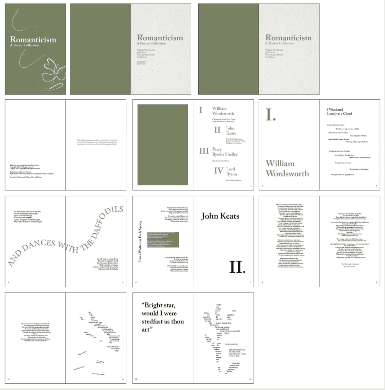 A typography-driven editorial book exploring Romantic poetry through layout, imagery, and motion.