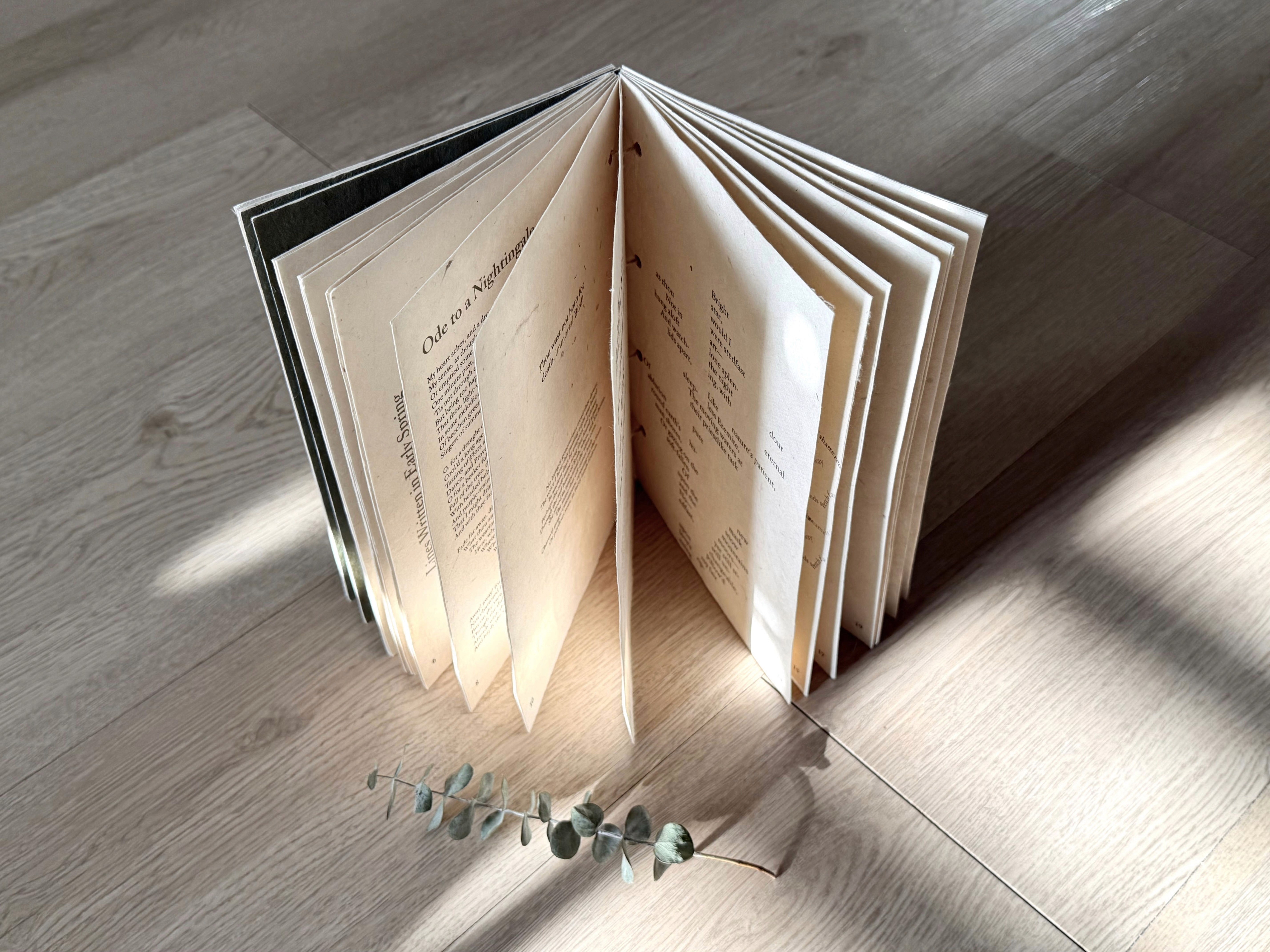 This project reimagines Romantic-era poetry through expressive typography and experimental layout. Featuring poems by William Wordsworth, John Keats, Percy Bysshe Shelley, and Lord Byron, the book explores themes of nature, impermanence, beauty, and emotion that define the Romantic movement.